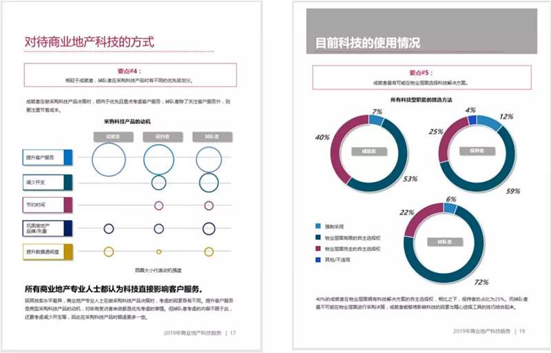 报告依托中国商业地产行业数据采集,通过整体数据整合分析,得出不同阶段专业人士对科技的战略部署情况。尤其是在面对高科技冲击时,对如何合理安排科技项目预算、制定优化科技产品采购策略,恰当分配到各职能部门,从而节省开支,并依靠科技前沿获得行业竞争力提供指导。