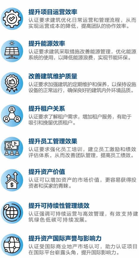 提供节能环保绩效评估和既有建筑可持续性管理的框架,是对在能源和环境管理绩效方面表现卓越的商业地产的认可。