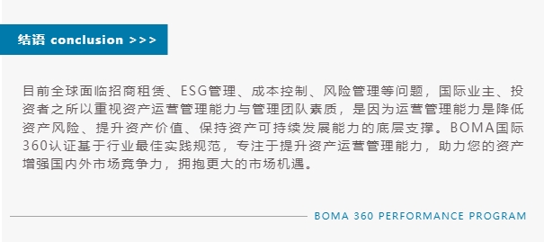 BOMA根据行业发展与利益相关方(投资者、业主方、租户等)提出的全新要求,持续更新认证审核标准,确保BOMA认证楼宇始终在同类建筑中保持领先管理能力与市场竞争优势。2022年BOMA升级360认证审核标准: