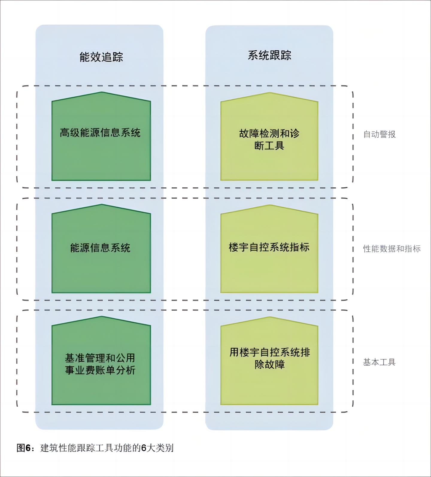 这本国际标准的价值在于,它将建筑性能跟踪细化为“两个跟踪维度“,”三个管理层次“和”六个工具功能“,将复杂的问题体系化、工具化与数据化,便于楼宇运营者按照不同阶段与内容展开工作。