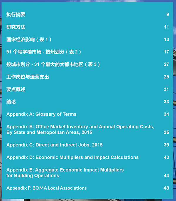 商业地产,是经常被忽视的行业,但它在促进当地和国家经济发展上却产生了积极而深远的影响。本报告由乔治梅森大学Stephen S. Fuller 博士为BOMA编写,通过对美国91个BOMA当地分会所管理的105亿平方英尺办公空间进行数据调研,了解BOMA所服务的写字楼在建筑运营(包括管理、维护与维修、服务及设施)领域对国民经济的影响与贡献。报告也为商业地产快速发展中的中国带来可借鉴的数据与经验。推动商业地产发展,甚至会影响国家在全球经济竞争中保持战略性地位,所以不能小看这一行业的力量与作用。